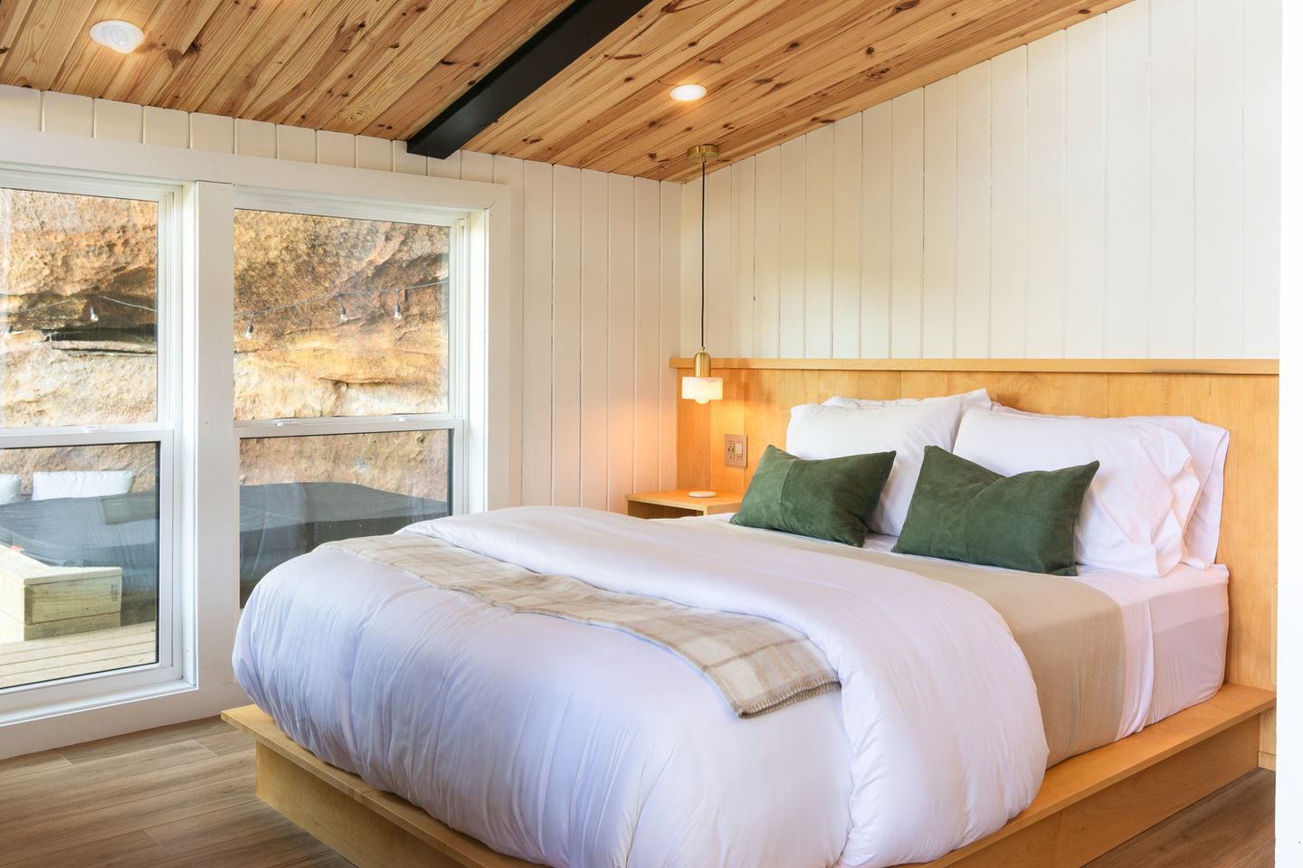 Rockface Retreat sleeps 2 in a luxury queen bed for a comfortable stay but has the ability to accommodate up to 3 guests.